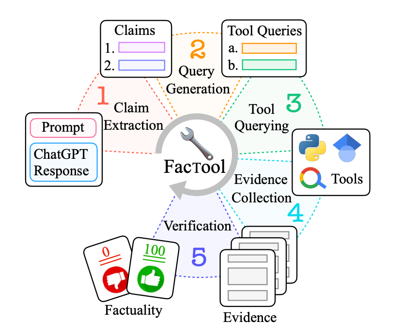 FacTool: Factuality Detection in Generative AI - A Tool Augmented Framework for Multi-Task and Multi-Domain Scenarios